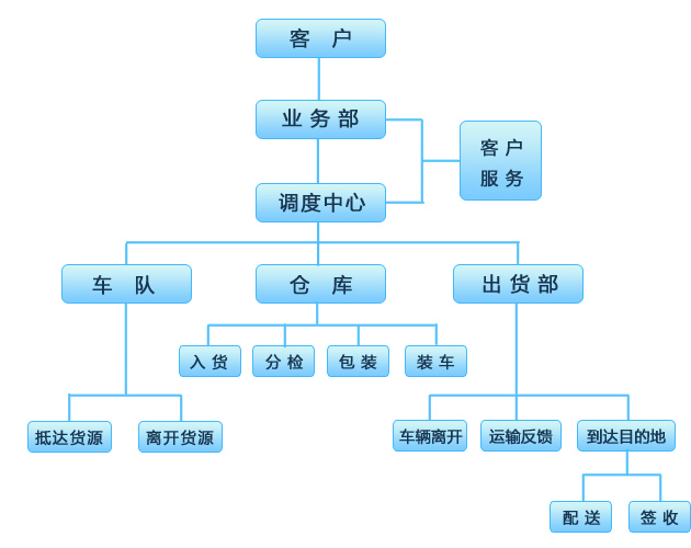 1、公路運輸主管從客戶處接受(傳真)運輸發(fā)送計劃;2、公路運輸調(diào)度從客戶處接出庫提貨單證。3核對單證